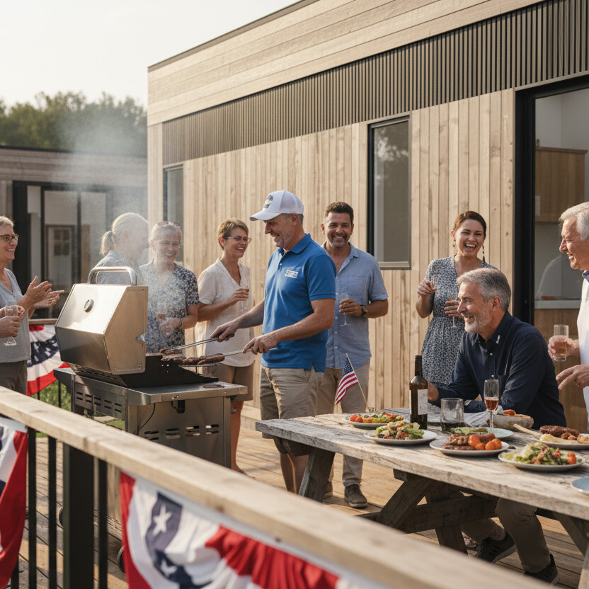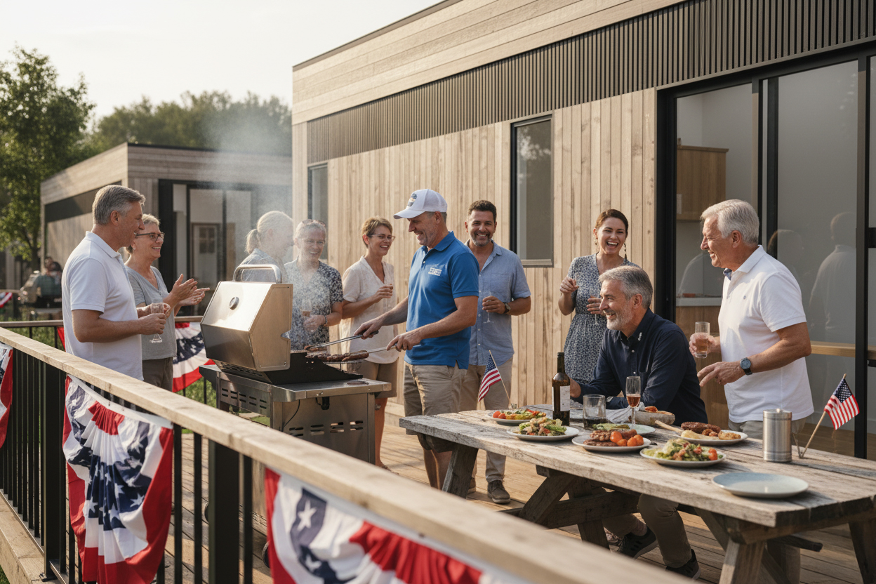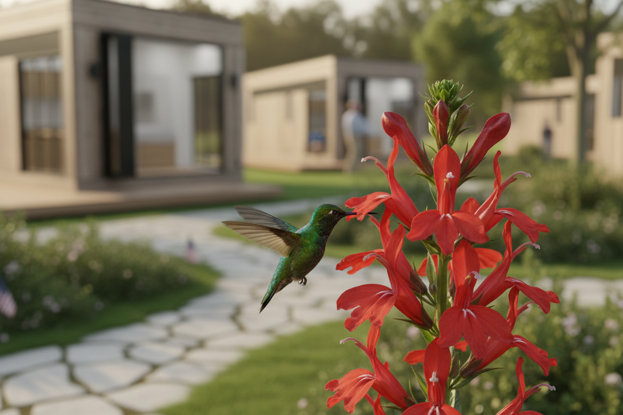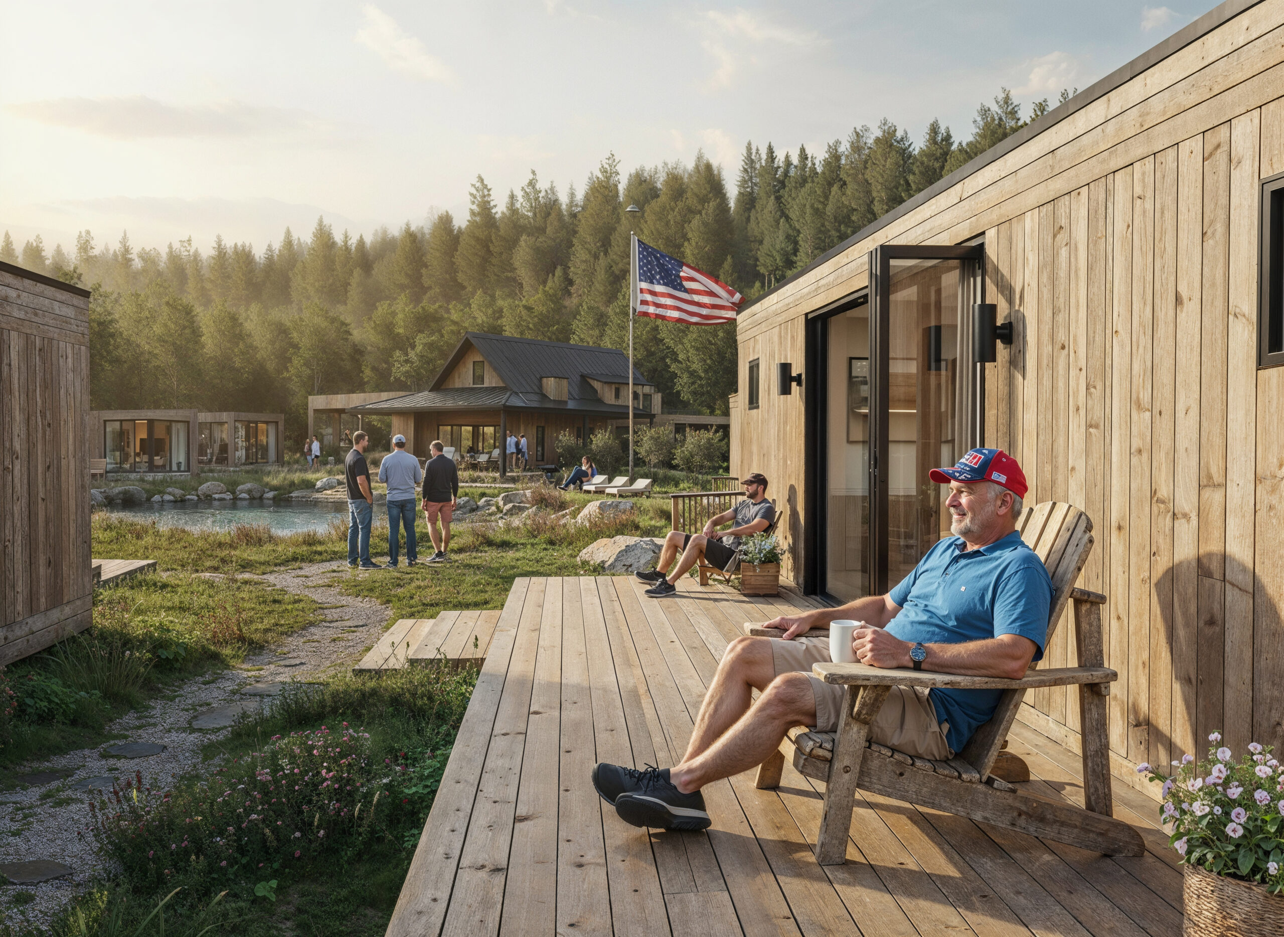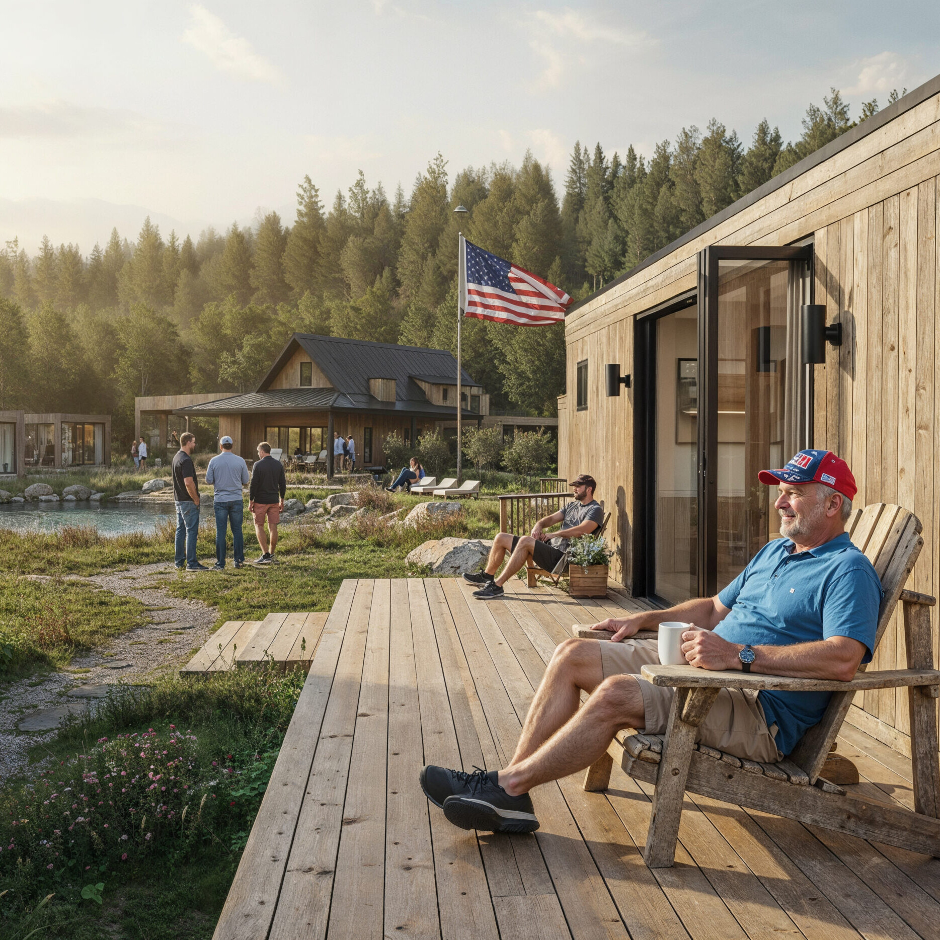 The Brave Living community is more than just housing; it’s a holistic approach to support, offering amenities like a central garden for growing food, which not only provides nourishment but also therapeutic benefits through gardening. The American flag flying high symbolizes our respect and commitment to those who have served our country.